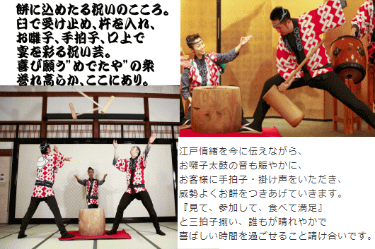 ■ 江戸前で粋なめでたやの祝い餅つきパフォーマンス